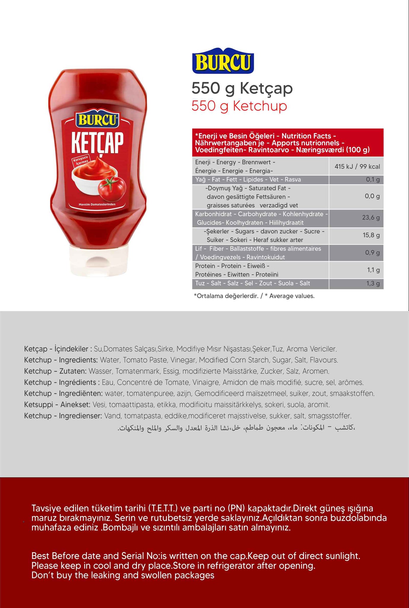English : Burcu Sweet Ketchup 550g – No Added Preservatives