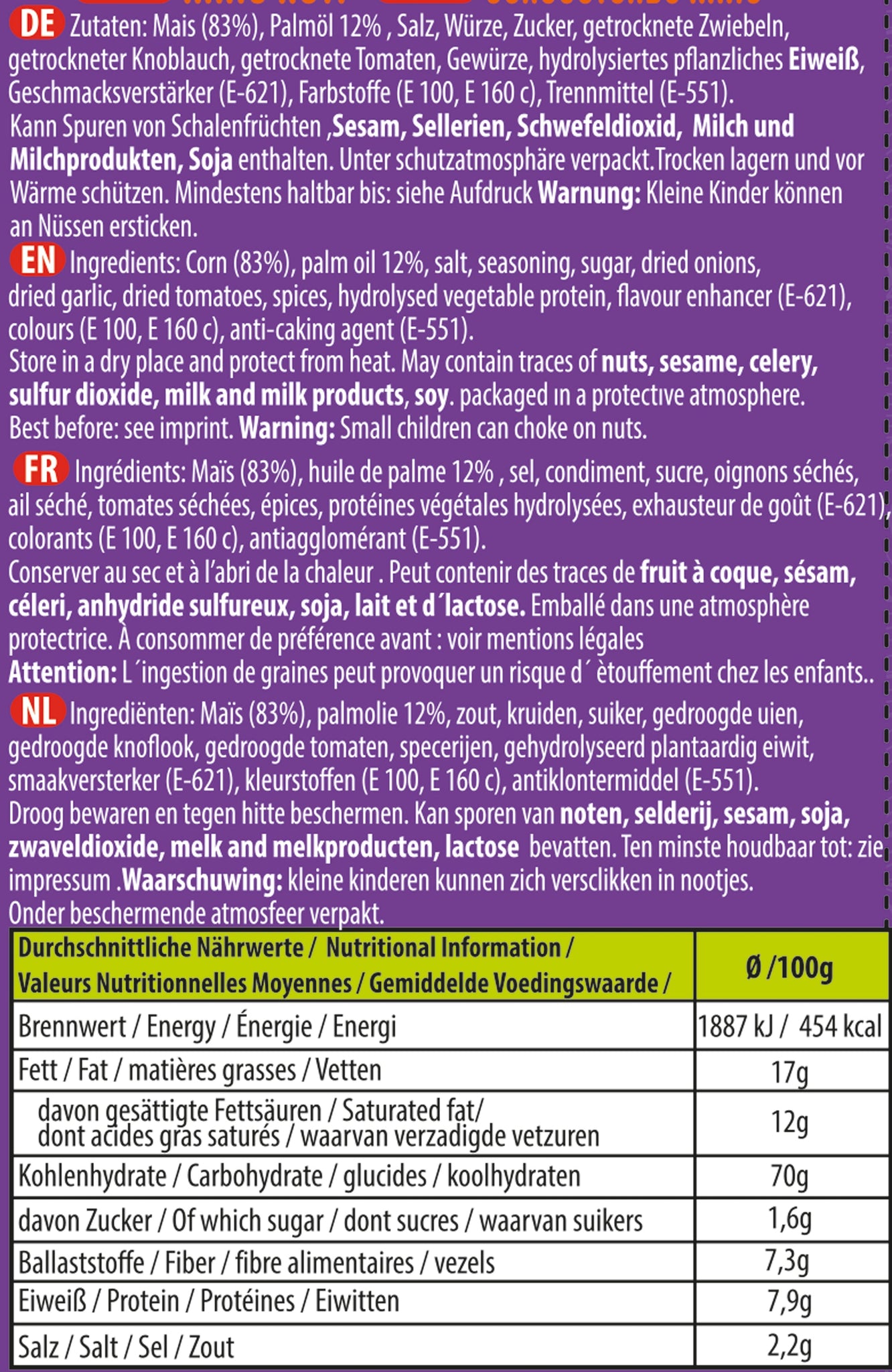 Ten snack świetnie sprawdza się w każdej sytuacji: w pracy, w kinie, podczas jazdy samochodem, na biwaku czy w domu przy ulubionym serialu. Dzięki kompaktowemu opakowaniu 60 g możesz zabrać go wszędzie – a przy okazji wybierasz produkt w 100% nadający się do recyklingu, co jest dodatkowym atutem.