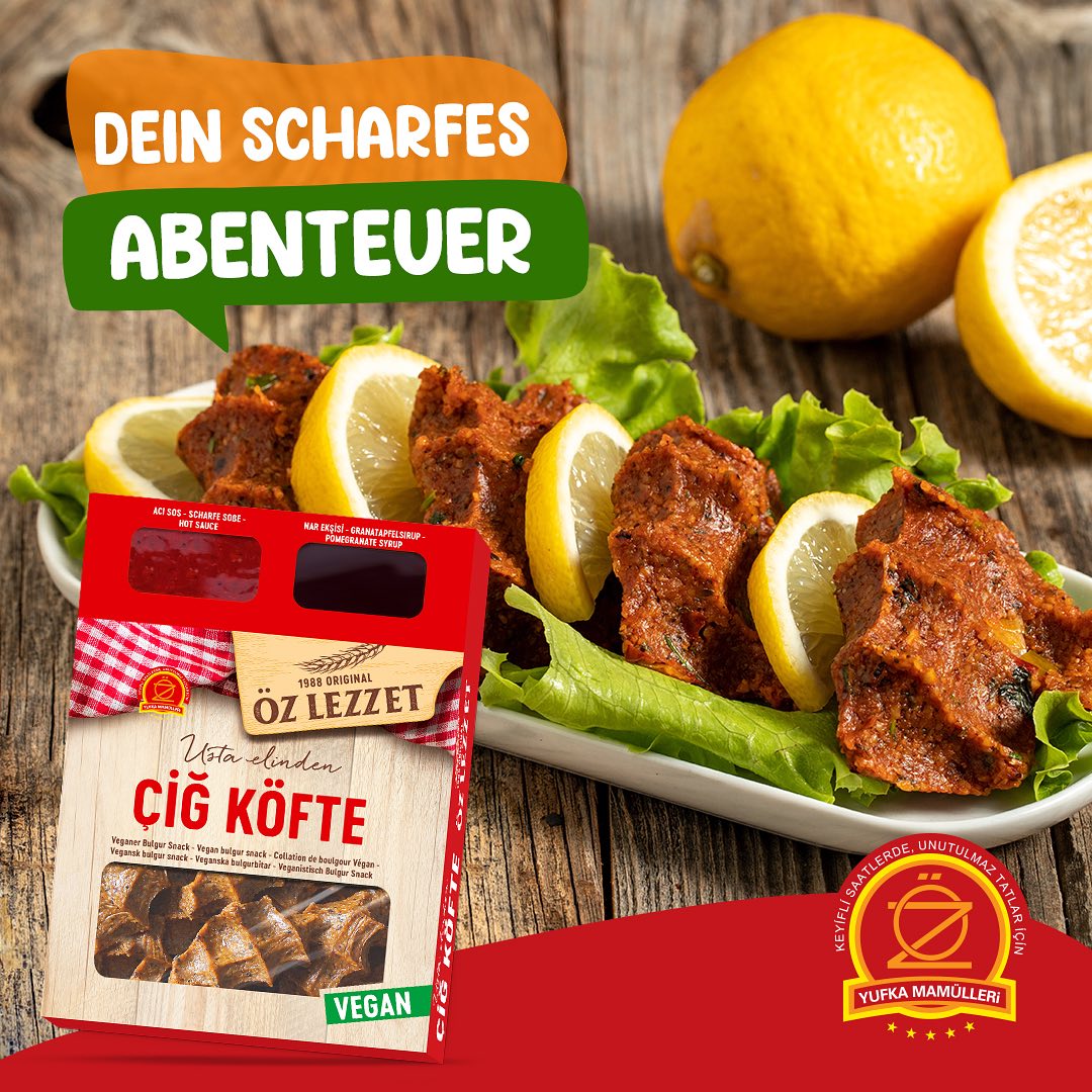 Poznaj klasyczny smak tureckiej kuchni w nowoczesnej, wegańskiej odsłonie. Çiğ Köfte od marki Oz Lezzet to aromatyczne, delikatnie pikantne kotlety z bulguru i przypraw, gotowe do szybkiego podania.