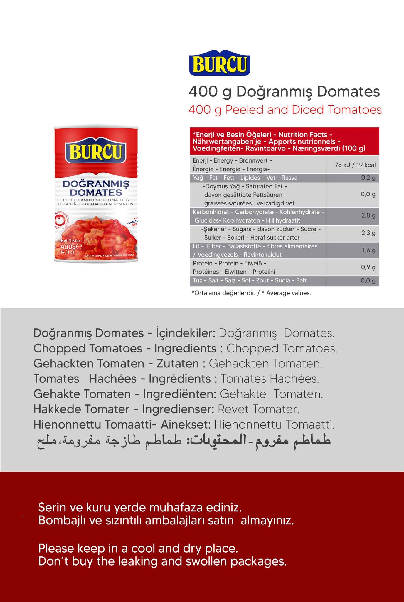 English : Burcu Chopped Tomatoes 400g – 100% Natural in Can